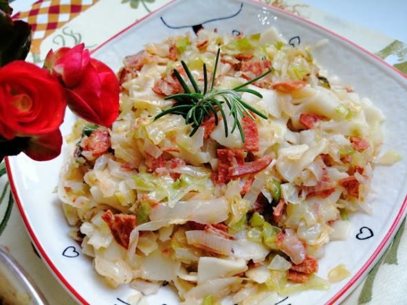 Priprema: Skuvati flekice. Kobasicu i slaninu iseći na kocke pa ih propržiti ako je potrebno dodati malo ulja. Dodati seckan mladi luk pa kad se i to proprži dodati kupus na rezance i propržiti. Dodati so i biber i sve izmešati sa skuvanim flekicama. Uživajte!