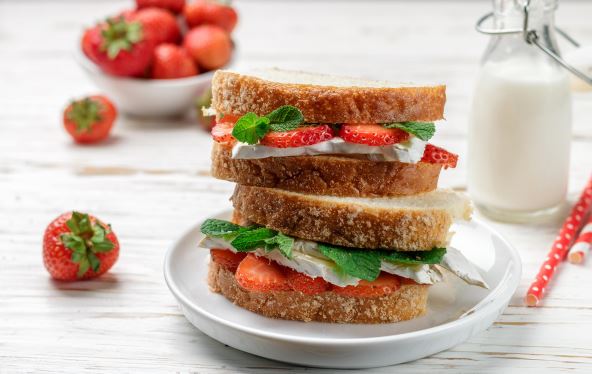 - Na krušku hleba stavite sir i jagode, poklopite drugom kriškom i pecite 3-4 minuta sa svake strane.