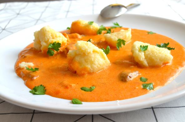 - Napravite knedle s jajetom, brašnom, grizom i malo ulja.