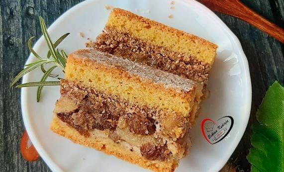 Priprema: U brašno dodati prašak za pecivo i rastopljen maslac, dodati 100 g šećera, koricu limuna i 4 žumanca. Sve dobro izmesiti i podeliti na dva dela. Prvi deo od razviti oklagijom i staviti na dno podmazane tepsije.