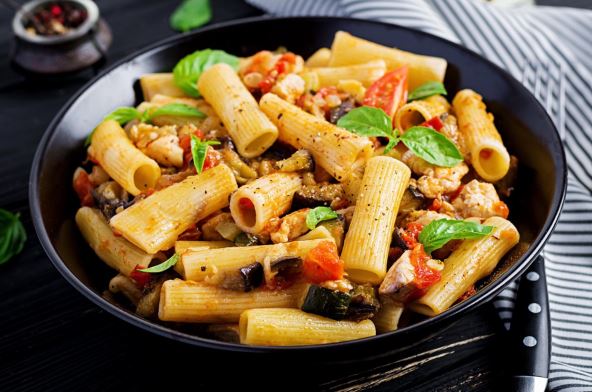 Priprema: Patlidžan oljuštite pa isecite na kockice. Propržite ga kratko na maslinovom ulju. Kada se skoro isprži dodajte mu zgnječen beli luk i začine. Sve promešajte pa pomoću blendera ili štapnog miksera pretvorite u pire. Dodajte pire u skuvanu, vruću testeninu. Izmešajte i dodajte sir po izboru.