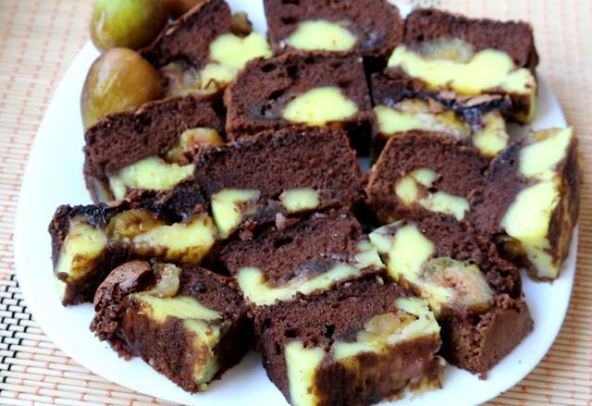 Sastojci: 4 jaja, 4 kašike brašna, pola praška za pecivo, 100 g čokolade, 150 g šećera, 2 pudinga od vanile, 50 g maslaca ili margarina, 200 g svežih smokava, 500 ml mleka.