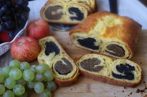 - Poslednju koru nemojte mazati već na jednoj strani staviti mlevnog maka koje poparimo sa malo mleka i dodamo šećer po želji.