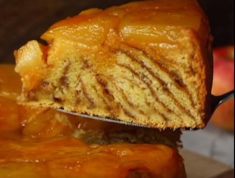 Priprema: Jabuke oljuštite i očistite od semenki pa isecite na trećine. Zatim u tiganju karamelizujte 100 g šećera, pa mu dodajte maslac a zatim i jabuke. Neka se sve krčka 5 minuta, pa jabuke posložite po dnu okrugle tepsije, a sok prelijte preko i ostavite sa strane dok pripremite testo.