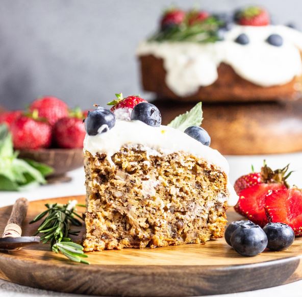 - Izvadite iz rerne, pospite hlebnim mrvicama i slojem odmrznutog šumskog voća, te s 50 grama seckanih oraha.
