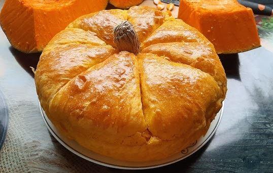 Sastojci: 550 g brašna, 300 ml mleka, 20 g kvasca, 50 ml maslinovog ulja, 200 g kuvanog duleka (bundeve), 1 kašičica šećera, malo soli, žumance za premazivanje.