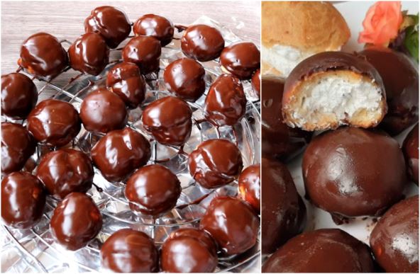 U špric ubaciti testo i u plehu oblikovati male loptice. Peći na 200 stepeni oko 35-40 minuta. Kad se malo prohlade, nožićem sa donje strane izbušiti rupice. Umutiti slatku pavlaku, ubaciti u špric pa produžetkom puniti testo.