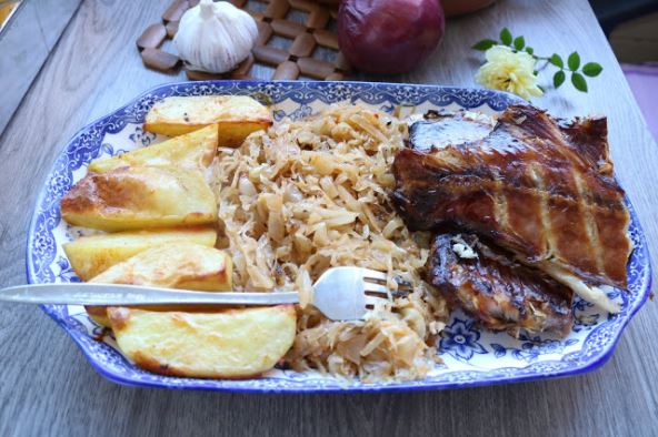 Potrebno je: 1 glavica kiselog kupusa; 1 glavica crnog luka; 1 glavica belog luka; 1/2 dimljenog šarana; suva slatka paprika; ljuta tucana paprika; biber u zrnu; biber mleveni; lovorov list; ulje.