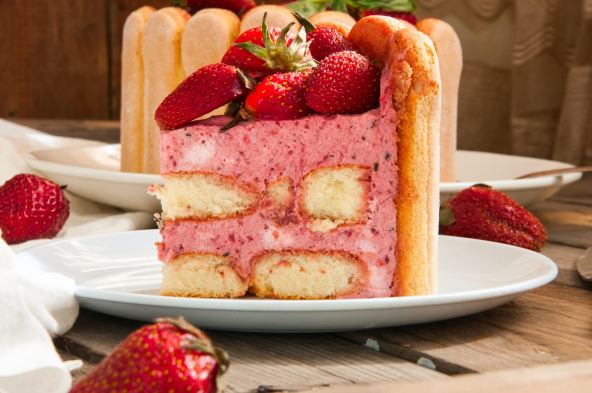 - Po kremi posložite red jagoda naseckanih na ploške pa po jagodama namočene piškote.