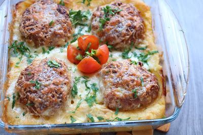 Od krompira napraviti lopte oblikovati ih rukama i poređati u pleh. Napraviti na svakoj lopti udubljenje čašom i u to ubaciti čufte. Premazati ih uljem i peći na 220 stepeni C oko 30 min. Izvaditi iz rerne pa naribati kačkavalj. Vratiti u rernu na 5 minuta da se istopi.