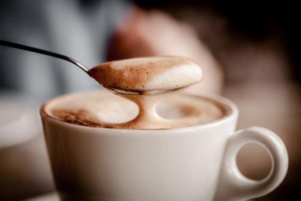 Mleko prespite u šolju sa kafom pomoću kašike, pa na kraju prebacite i preostalu penu koje je sigurno ostalo još u posudi. Po želji pospite cimetom i uživajte!