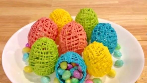 Stavite u frižiderna oko sat vremena da se stegne dobro i nakon toga probušite balon. Izbadite ga iz čokoladne mrežice i to je sve, dobili ste najzanimljiviju uskršnju jestivu dekoraciju.