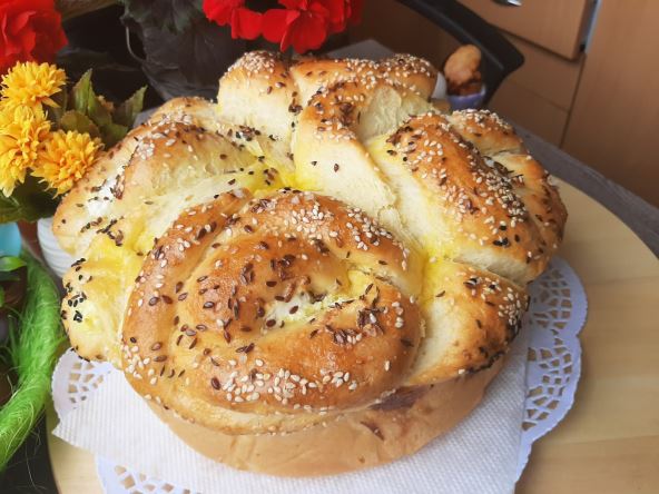 Ostaviti da poraste premazati žumancetom i posuti susamo i krupnom solju i kimom.