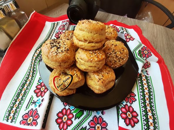 Potrebno je: 200 ml mleka, 1 kašičica šećera, 1 jaje, 1 žumance, malo soli, 15 g svežeg kvasca, 350- 400 g brašna, 150 g mlevenih čvaraka, susam, kim i krupna so.