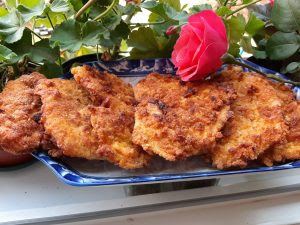 Priprema: Meso iseći na filete i lagano izlupati između folije. Posoliti i pobiberiti. Jaja razlupati staviti senf i sve dobro izmešati. U činiju staviti kukuruzno i belo brašno dodati mlevenu papriku i sve izmešati.