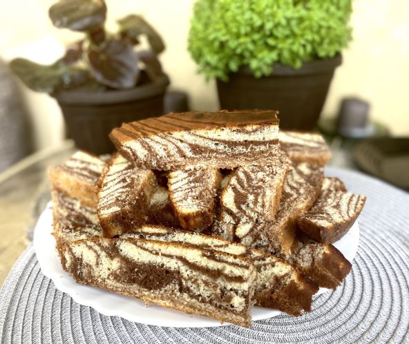 Izmiksirati jaja, pa dodati šećer i vanilin šećer. Nastaviti sa miksiranjem, ubaciti jogurt i ulje. Zatim prašak za pecivo i brašno. Sve lepo sjediniti. Smesu podeliti na dva dela. U jedan deo staviti kakao i kašiku mleka. Zatim lepo umutiti, da postane glatko. Dve dobijene smese naizmenično sipati u podmazan kalup praveći krugove. Peći na 180 stepeni, 35 minuta. Prijatno!