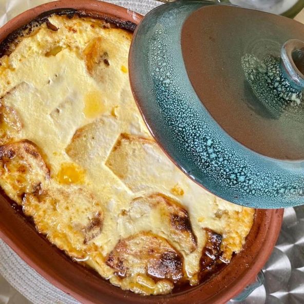 Na ulju propržiti luk i meso, začiniti po ukusu. Krompire iseći na tanke kolutiće. Redjati po nauljenoj posudi prvo krompir, začiniti po ukusu, pa dodati meso i tako sve dok imamo materijala. Poslednji red su nam krompiri. U posebnu posudu umutiti jaja, dodati pavlaku i mleko i sve sjediniti. Preliti preko musake. Peći na 200 stepeni 45 minuta. Prijatno!