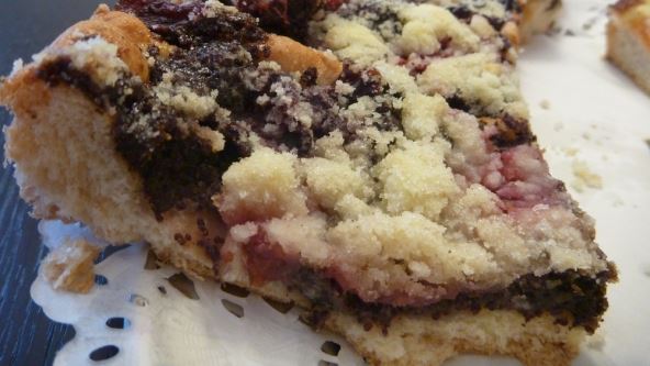 Izrendati testo na krupno i posuti preko marmelade ravnomerno. Peći u prethodno zagrejanoj rerni na 180 stepeni dok ne bude gotovo. Dobije se jedinstveni vazdušasti kolač sa slatkom i hrskavom "rošavom" koricom.