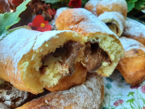 Sastojci: 15 g kvasca, 2 jaja, korica limuna, 300 ml mleka, 1 kašičica šećera, 650-700 g brašna, malo soli, krem za punjenje.
