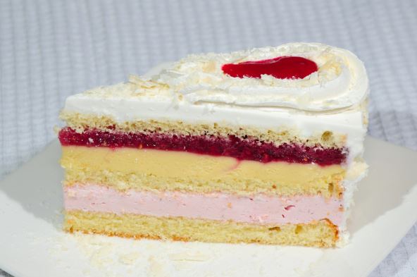 Istresite žele preko čokolade i poravnajte, treba da bude već žele ali ne stegnut skroz, ali ne i vruć da curi, mlak. Ostavite u frizu 10 minuta, pa izvadite i stavite vanila krem. Ulupajte šlag i nanesite preko vanila krema.