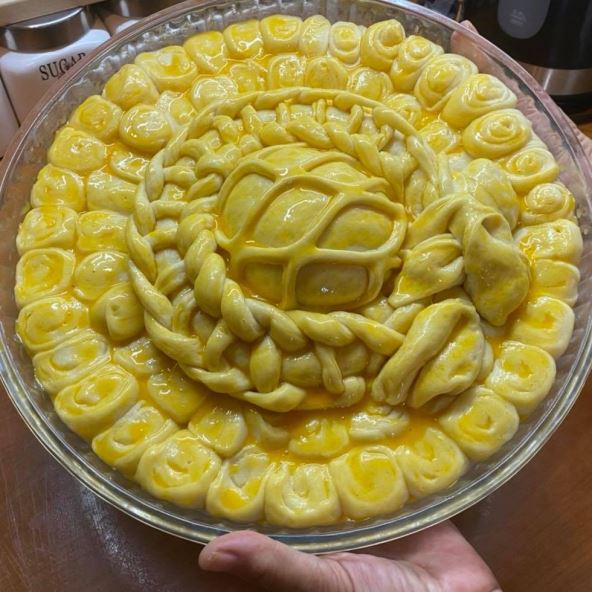 Priprema: Aktivirati kvasac, zatim umesiti glatko i vazdušasto testo. Ostaviti da odstoji 30min da naraste, nakon toga praviti oblike. Pogaču premazati žumancem, i peći na 200 stepeni 35-40min. Prijatno!