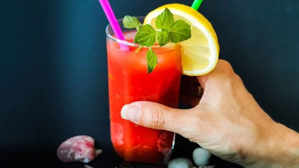 Potrebno je: 1 limunova kora; 2 kk šećera; 1 lubenica; sveža nana; malo viskija; sok od limuna.