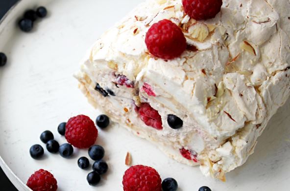 - Ubacite limunovu koru u umućenu slatku pavlaku. Namažite njom puslicu, a onda pospite borovnice i maline. Počevši od kraće strabe i koristeći se papirom, urolajte puslicu tako da dobijete valjak. I to je to.