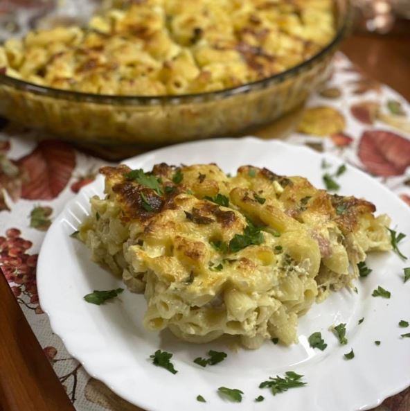 Priprema: Slaninicu propržiti bez ulja kako bi bila hrskava. Zatim je dodati u makarone zajedno sa iseckanom obarenom piletinom. Promešati i presuti u posudu za pečenje. Umutiti jaja, posoliti, dodati ulje, sir, pavaku i pavaku za kuvanje. Po želji dodati iseckani peršun. Sjediniti pa preliti preko makarona. Peći na 200 stepeni 25-30min. Prijatno!