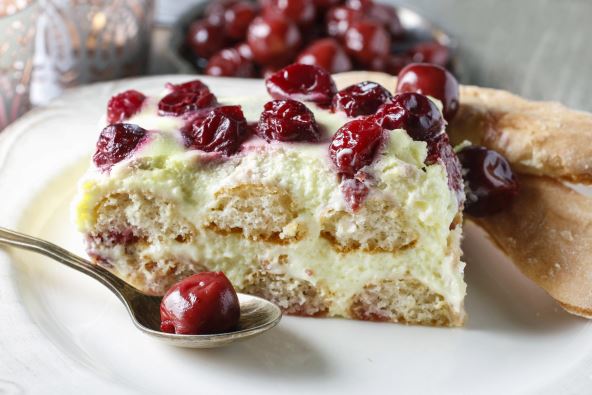 - Preko piškota kašikom ravnomerno dodajte kremu od pudinga i višanja.