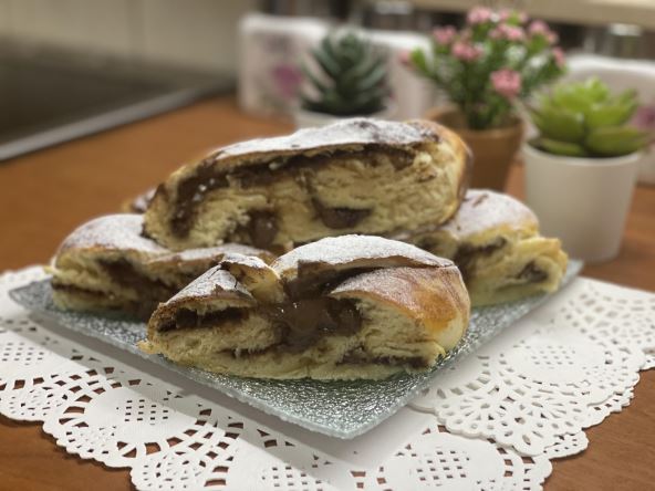 Priprem: Kvasac aktivirati, pa dodati ulje i brašno i umesiti glatko testo. Ostaviti da naraste oko 30min. Zatim testo razvući u pravougaonik i iseći na tri trake. Svaku traku namazati kremom pa zatvoriti krajeve. Isplesti pletenicu. Premazati žumancem i ostaviti da odstoji još 20min, zatim peći na 200 stepeni 20-25min. Po želji posuti prah šećerom. Prijatno!