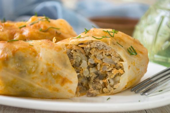 Kada kupus bude poluskuvan, u šerpu dodamo griz, promešamo, sklonimo sa šporeta i dodamo jaje. Na parče nauljene najlonske folije nanesemo kupus. Na kupus nanesemo fil od mlevenog mesa i pomoću folije uvijemo rolat. Uvijemo rolat u foliju, stavimo u nauljenu tepsiju a zatim odstranimo foliju. Brašno dodamo u sud sa pavlakom i promešamo žicom za mućenje.