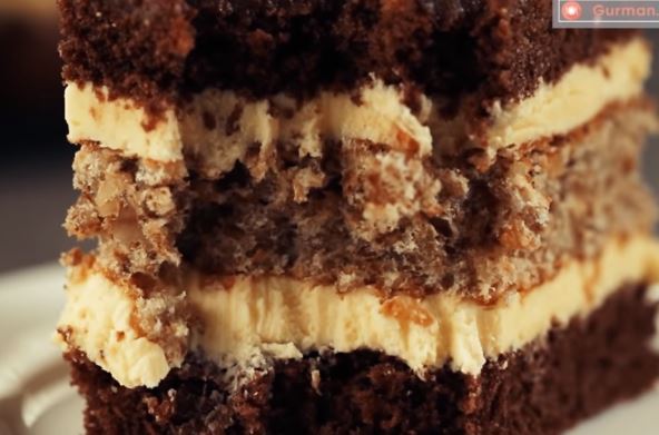 Sastojci za prvu koru: 6 jaja, 200 g šećera, 4 kašika proključale vode, 150 g brašna, 1 kesica praška za pecivo, 2 kašike kakaa.
