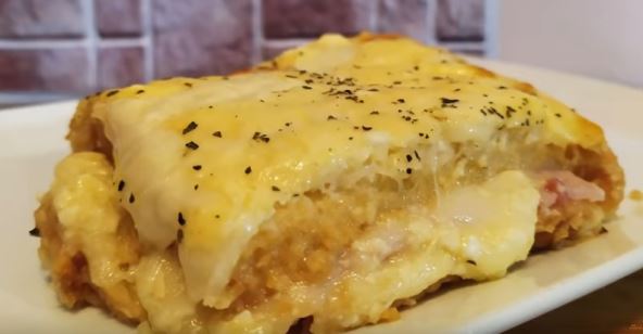 PRIPREMA: Umutite 3 jaja, dodajte 300 grama sitnog sira; 30 ml ulja; 2 dl jogurta; pola praška za pecivo. Podmažite vatrostalnu posudu, tost hleb dobro natopite prelivom, pa složite u posudu, jedno do drugog. Preko posložite šunku i kačkavalj, zatim još jedan sloj natopljenog tost hleba, pa još jedan sloj kačkavalja i ostatak preliva. Preko staviti origano pa peći 15 minuta na 200 stepeni Celzijusa. Služiti toplo!