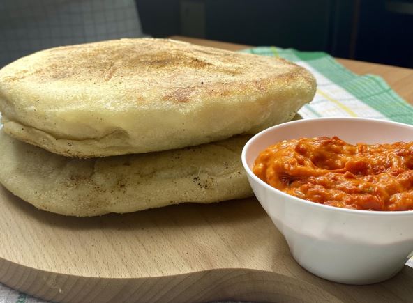 Priprema: Sastojke pomešati i umesiti mekano testo. Ostaviti da odstoji. Zatim podeliti na dva dela i razvući željeni oblik. Tiganj podmazati margarinom i posuti grizom. Hleb peći sa obe strane na umerenoj temperaturi u poklopljenom tiganju. Prijatno!