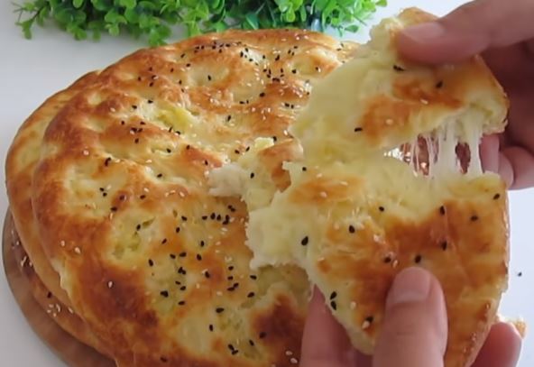 Za to vreme skuvajte krompir i izgnječite ga u pire. Dodajte mleko, kačkavalj i malo soli pa promešajte. Biće gusta smesa. Testo podelite na četiri loptice. Svaku razvucite u krug, pa na sredinu testa stavite četvrtinu fila takođe oblikovanog u lopticu. Obmotajte testo oko fila i opet prstima rastanjite tako da dobijete oblik lepinje. Isto uradite sa preostalim materijalom.