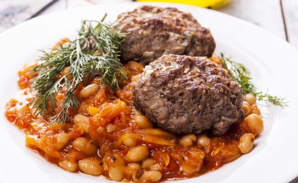 Zatim dodate brašno, biber i so. Oblikujete ćufte i pecete ih na ulju. Skuvate pasulj i dodate mu ćufte.