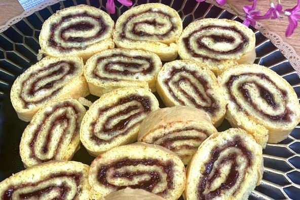Priprema: Izmiskirati sastojke za biskvit pa presuti u pleh za pečenje. Peći na 180 stepeni 10-12 minuta. Premazati džemom i uviti u rolat. Prijatno!