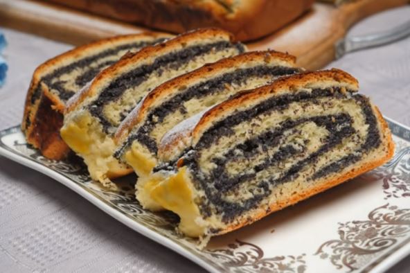Razvući na širinu pleha testo, pa tek onda u dužinu. Naneti pola mere maka pa prebaciti prvo donju stranu, pa levu, a onda i desnu po 1 – 2 cm sa strane. Nastaviti uvijanje na uobičajen način. Podvući obe ruke pod štrudlu i prebaciti je u pleh. Isto ponoviti i sa drugim testom.