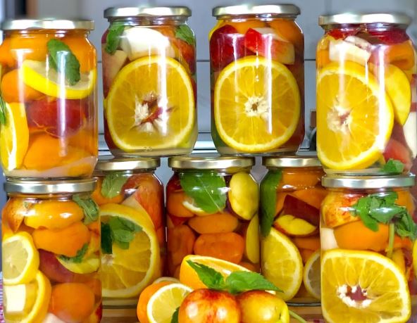 Priprema: Voće dobro oprati i iseckati po želji. Zatim ređati u prethodno sterilisane tegle, u svaku teglu dodati dve kašike kristal šećera i naliti hladnom vodom. Ponavljati proces dok ima materijala.