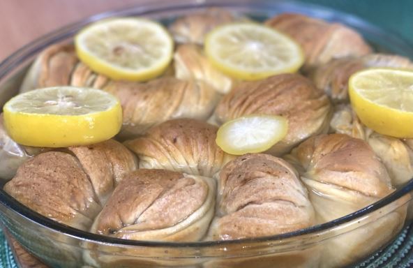 Priprema: Testo umesiti podeliti na šest delova i praviti kore. Svaku koru filovati tako što stavimo orahe i griz. Praviti oblike i ređati u posudu za pečenje. Peći na 200 stepeni 30 minuta. Preliti hladnim sirupom. Prijatno!