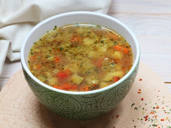 Priprema: Iseckati sitno crni luk pa ga na ulju i sa malo vode prodinstati Dodati iseckanu šargarepu i krompir, naliti vode da ogrezne, dodati suvi zalin i ostaviti da se kuva Kada bude na pola kuvano dodati očišćenu i iseckanu tikvicu na kockice.