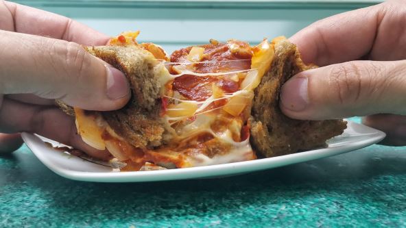 Priprema: Iseckajte beli luk i stavite u puter, posolite i dodajte origano. Promešajte. Ispržite paprike i crveni luk. Uzimite parče hleba, premašite puterom i stavite premazanu stranu da se prži. Dodajte na hleb kačkavalj, pelenicu,ljuti sos ili kečap, isprćeni luk,zatim opet sir, zatvorite drugim parčetom hleba, prmažite puterom i okrenite da se zašeče i ta strana.