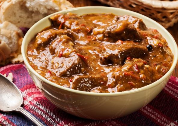 Nalijte supu ili vodu. Ako uspete da taman prelije sve imaćete dosta čorbice (idealno uz testeninu), ako uspete manje dobićete gušći gulaš. Izaberite da li volite više ili manje.