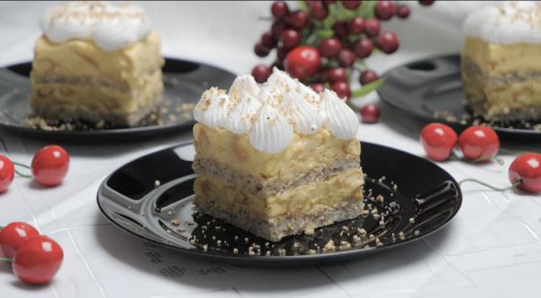 Bela kraljica – bele kore sa lešnikom, premaz od bele čokolade, u filu bela čokolada i mleveni keks. Savršen kolač za sve prilike.