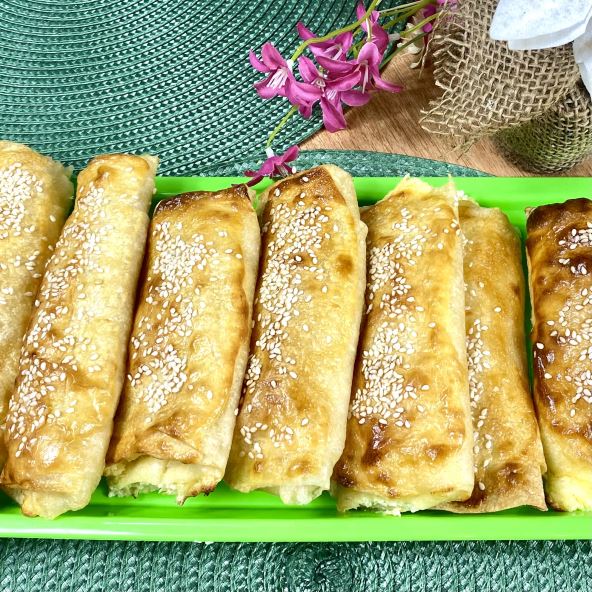 Priprema: Napraviti fil i lepo sjediniti. Zatim kore iseći da ostane torugao. Puniti rolnice pa uviti. Zatim ih preliti kiselom vodom, pa prebaciti u pleh za pečenje. Premazati žumancem i pavlakom i po želji dodati susam. Peći na 200 stepeni 10-12min. Prijatno!
