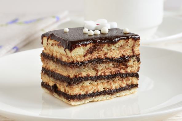 Pečen kolač ostaviti da se potpuno ohladi pa zajedno sa papirom izvaditi na dasku za sečenje i na njoj seći. Mnogo je lakše nego u plehu. Po želji preliti čokoladom ili posuti šećerom u prahu. Prijatno.