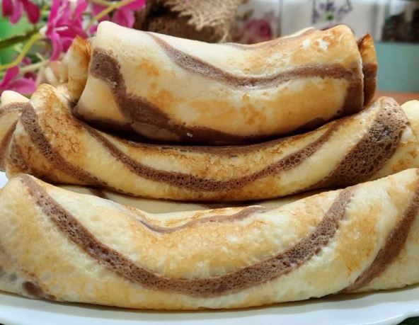Priprema: Sastojke umutiti, zatim dve kutlače odvojiti i posebno pomešati sa kakaom. Zagrejati tiganj napraviti spiralu od braon smese, pustiti nekoliko sekundi pa preliti belu smesu. Peći sa obe strane. Namaz po želji. Prijatno!