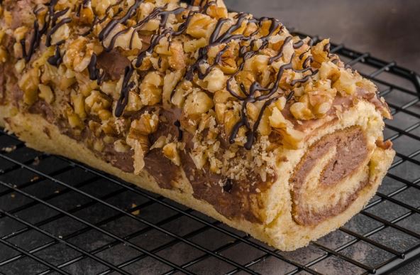 Rolate staviti na papir za pečenje u plehu. Štrudlu peći u zagrejanoj rerni na 180C oko 35-40 minuta. Štrudlu ostaviti da se prohladi pa seći na parčad. Štrudlu po želji posuti šećerom u prahu.