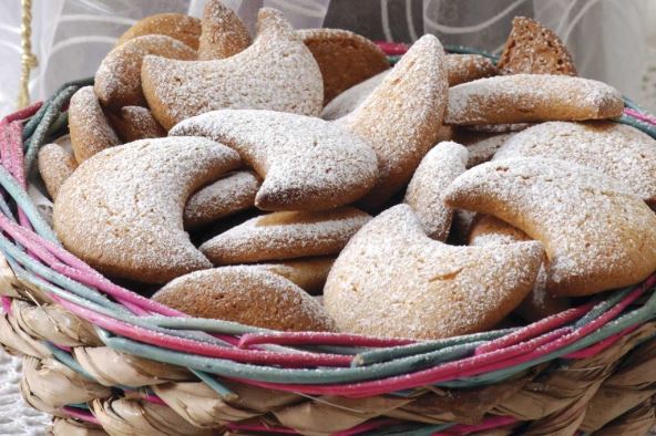 Dodajte kokos, šećer, so, jaja i tanko iseckani margarin. Umesite testo. Masu zamotajte u foliju i ostavite da odstoji dva sata na hladnom. Razvucite testo i isecite polumesece (kalupom). Poređajte ih na pleh na pola santimetra razmaka. Pecite u već zagrejanoj rerni na 190 stepeni oko 10 minuta.