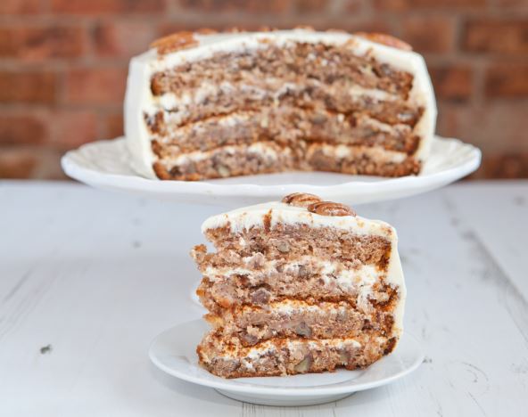 5. Sačekajte da se patišpanj skroz ohladi pre nego što sastavite tortu. Kada se ohladi, rasporedite fil od krem-sira između tri patišpanja i na kraju njime obložite celu tortu. Držite je u frižideru nekoliko sati pre nego što počnete da je sečete, da se ne bi raspala.